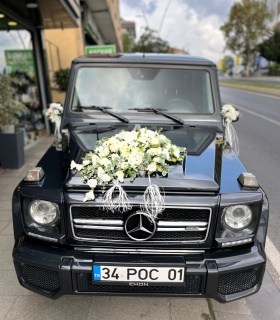 Beyaz Mercedes Gelin Araba Süslemesi